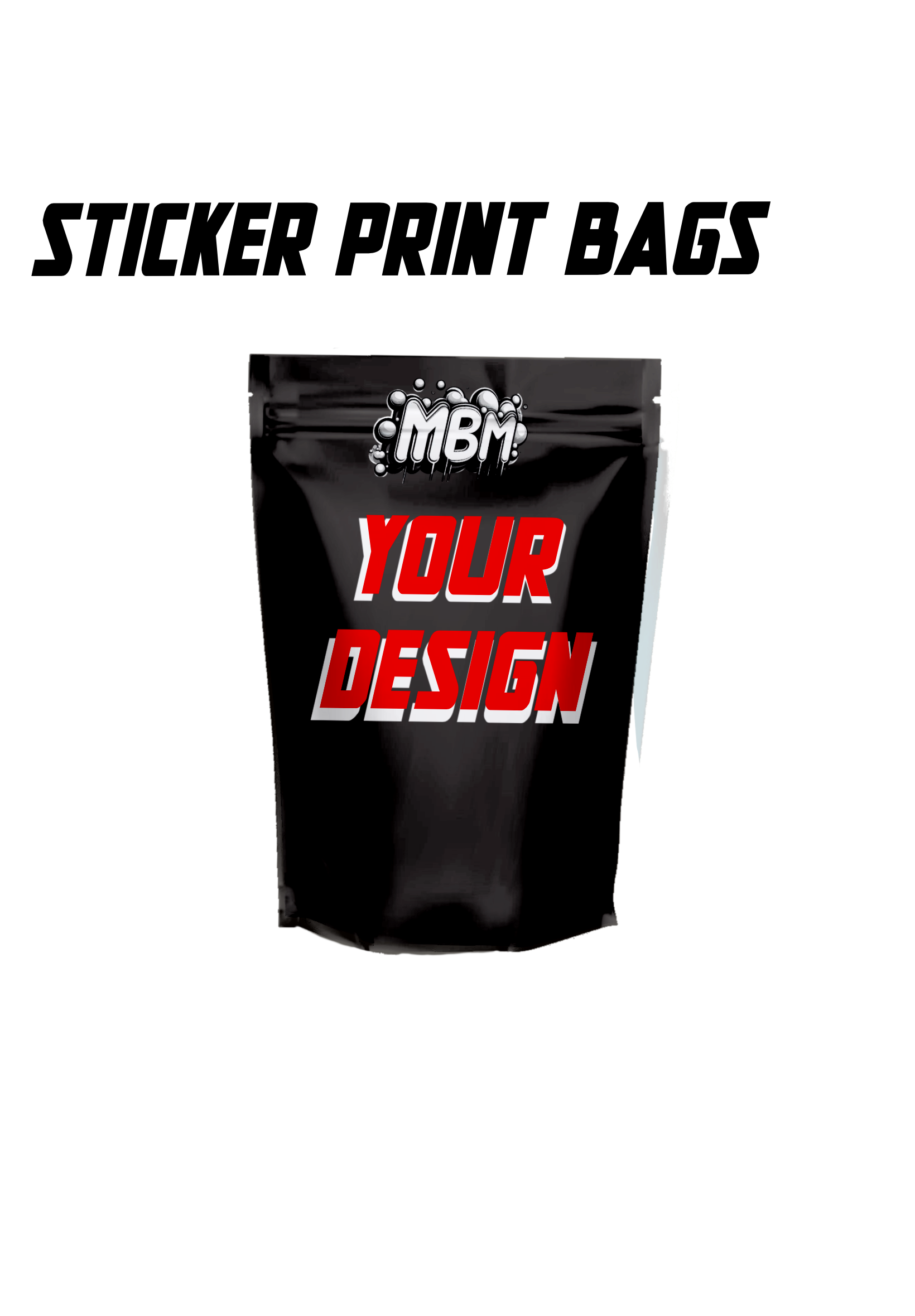 Offering high quality sticker printing for front and back designs. Perfect for Mylar bags and other packaging needs.